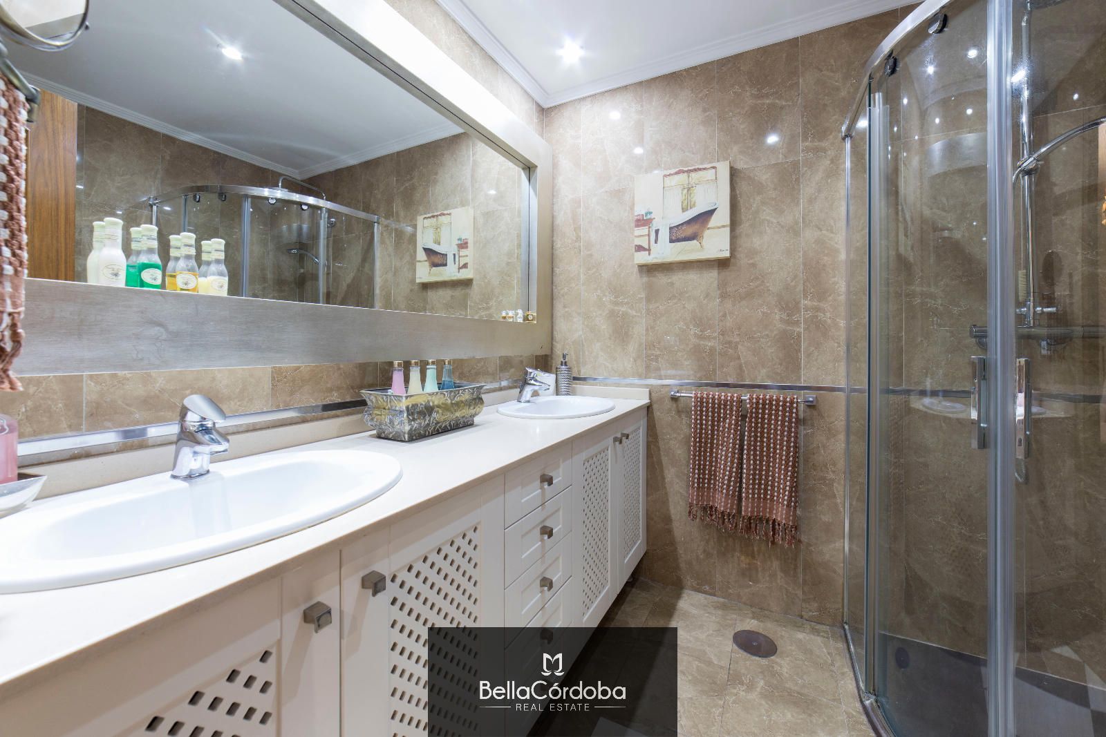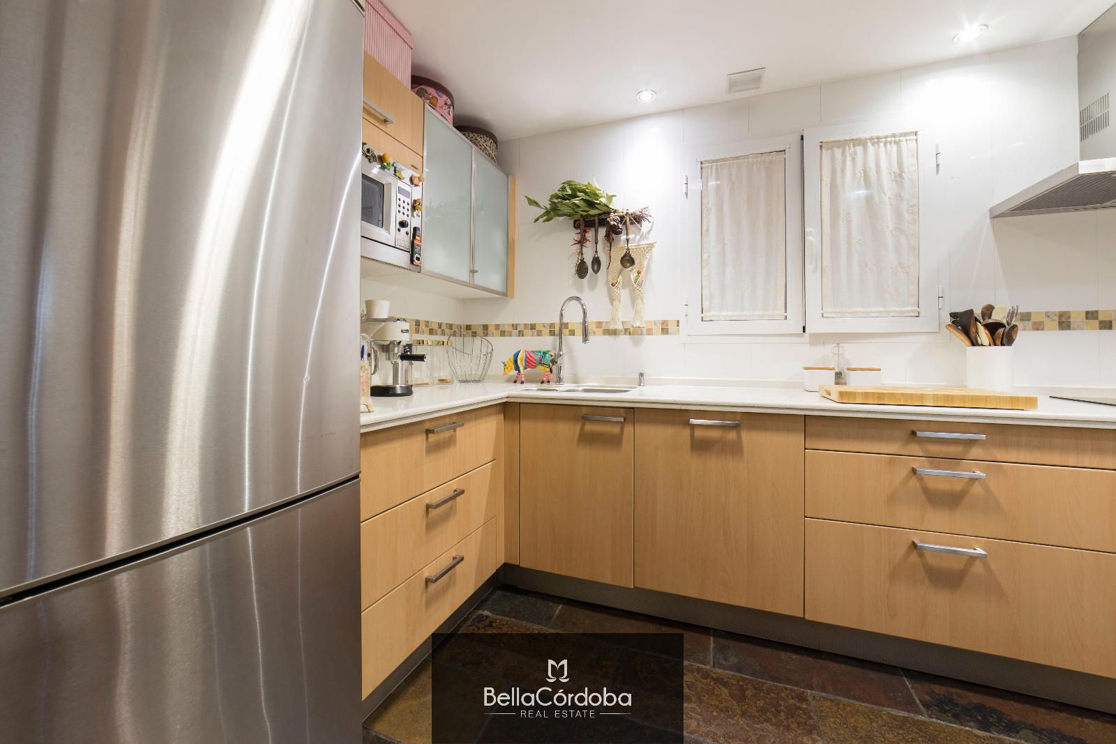CALIDADES: Suelo de radiante de mármol color crema, ventanas PVC en color madera, (doble acristalamiento) y carpintería interior madera de roble.