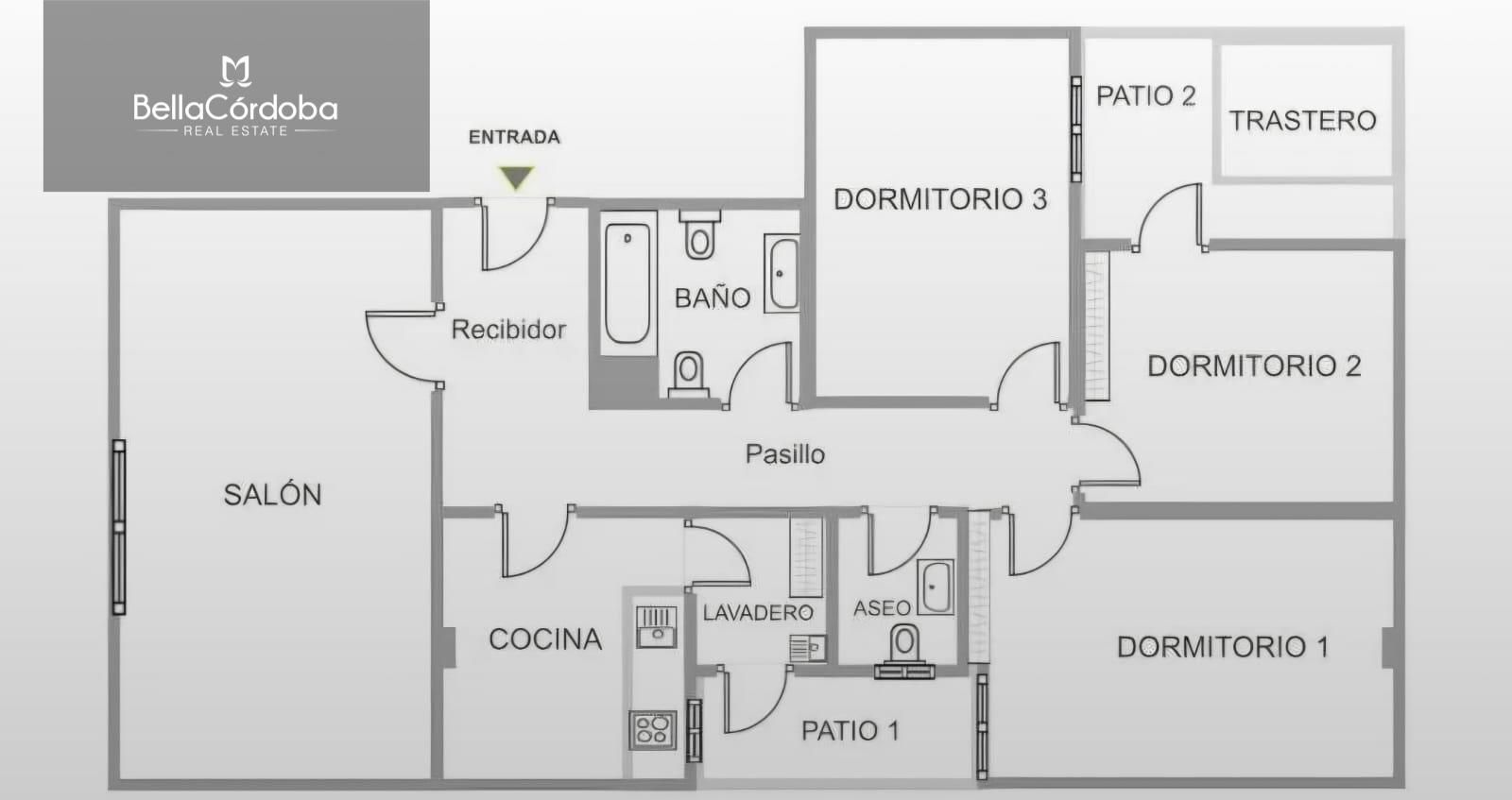 DISPOSICIÓN DE LA VIVIENDA: La distribución de la vivienda es la siguiente; Hall de entrada, salón independiente, cocina con acceso a patio de uso privativo, tres dormitorios uno de ellos con acceso a otro patio, baño y aseo.