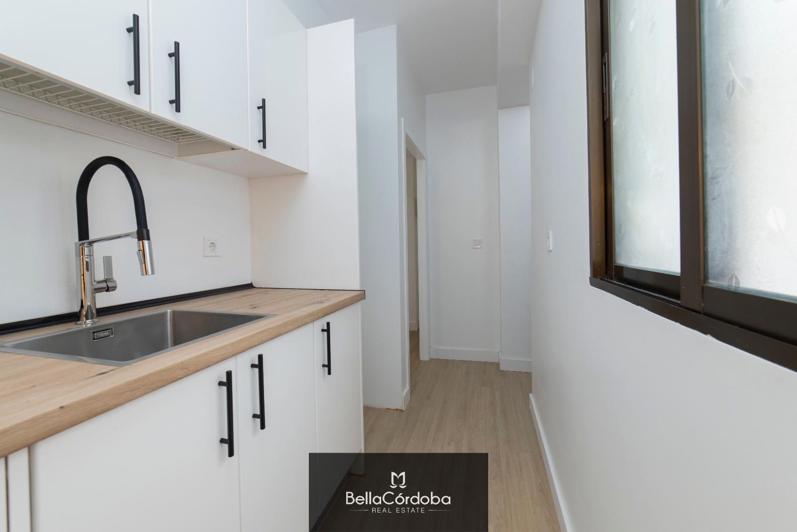CALIDADES: Suelo tarima flotante , ventanas en color bronce , carpintería interior madera lacada en blanco.